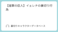 裏切り内容:仲間たちの「対話による平和」という理想を否定し、「地鳴らし」を実行した。