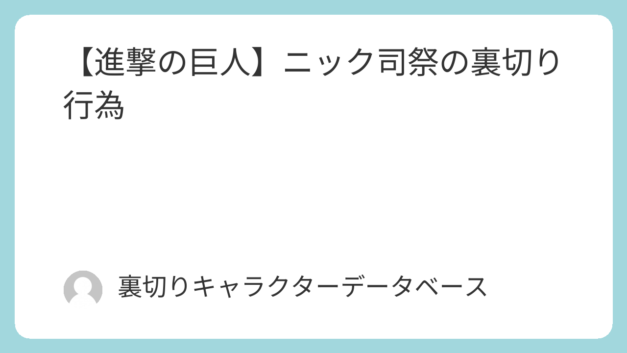 【進撃の巨人】ニック司祭の裏切り行為