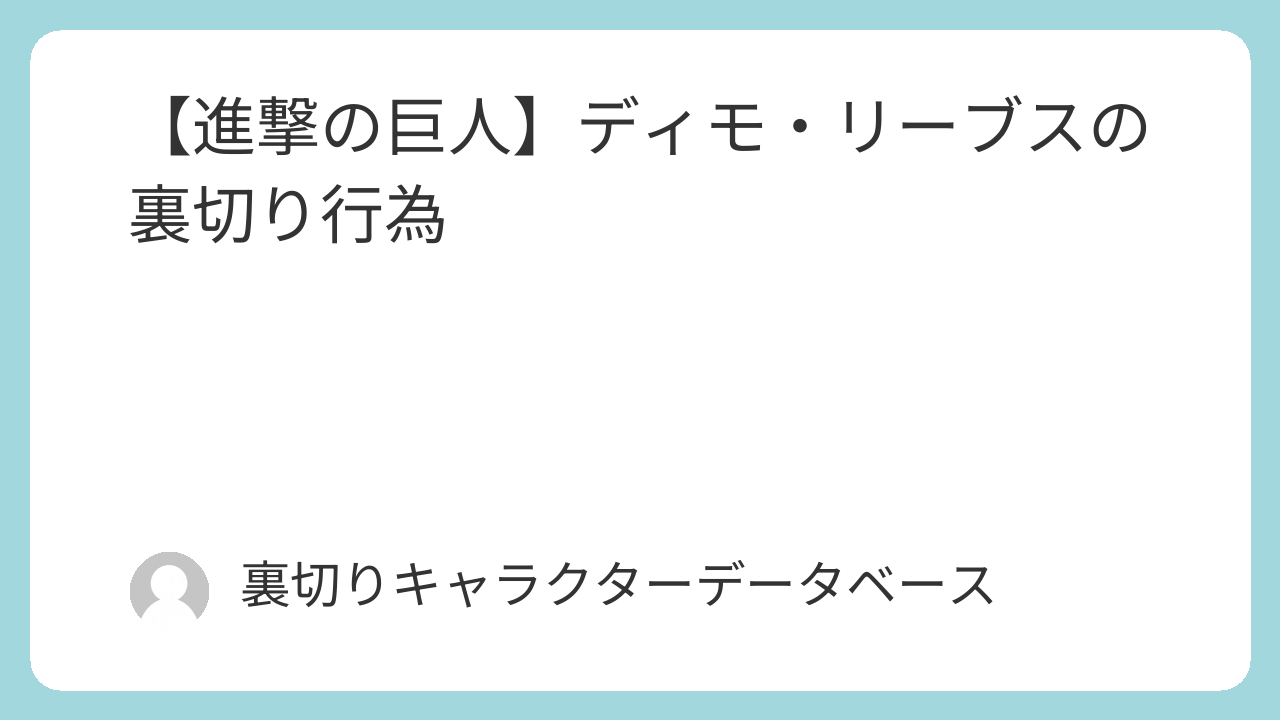 ディモ・リーブスの裏切りは、当初は利己的な目的によるものでしたが、最終的には壁内人類の存続という大義のために、命を懸けて体制に反逆したという点が特徴的です。