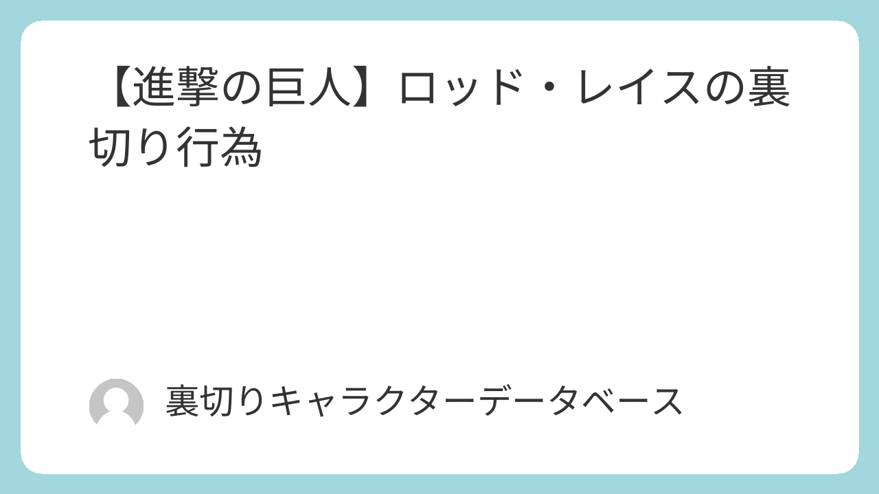 【進撃の巨人】ロッド・レイスの裏切り行為